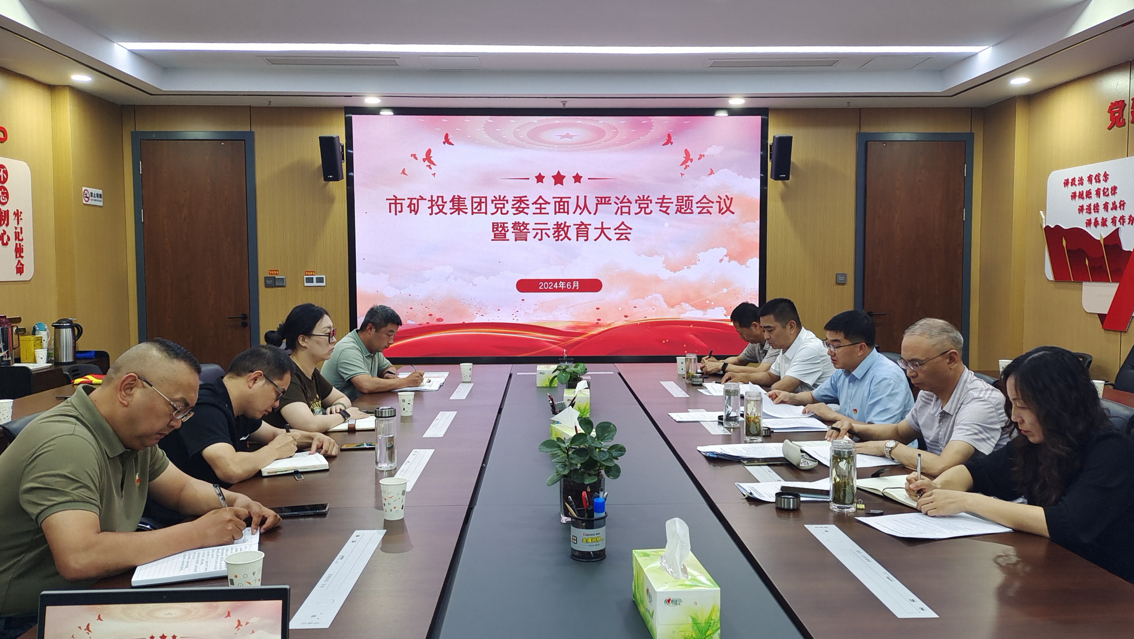 根據(jù)黨紀(jì)學(xué)習(xí)教育和“學(xué)黨紀(jì)、強(qiáng)作風(fēng)、提能力”大討論工作安排,6月28日下午,市礦投集團(tuán)黨委召開全面從嚴(yán)治黨專題會議暨警示教育大會,深入學(xué)習(xí)貫徹習(xí)近平總書記關(guān)于全面加強(qiáng)黨的紀(jì)律建設(shè)的重要論述,認(rèn)真學(xué)習(xí)全省以案為鑒以案促改除隱患保安全護(hù)穩(wěn)定會議和全市除隱患保安全護(hù)穩(wěn)定會議暨市委理論學(xué)習(xí)中心組會議精神。集團(tuán)公司黨委書記王峰主持會議,黨委班子成員及各子公司負(fù)責(zé)人參加會議。