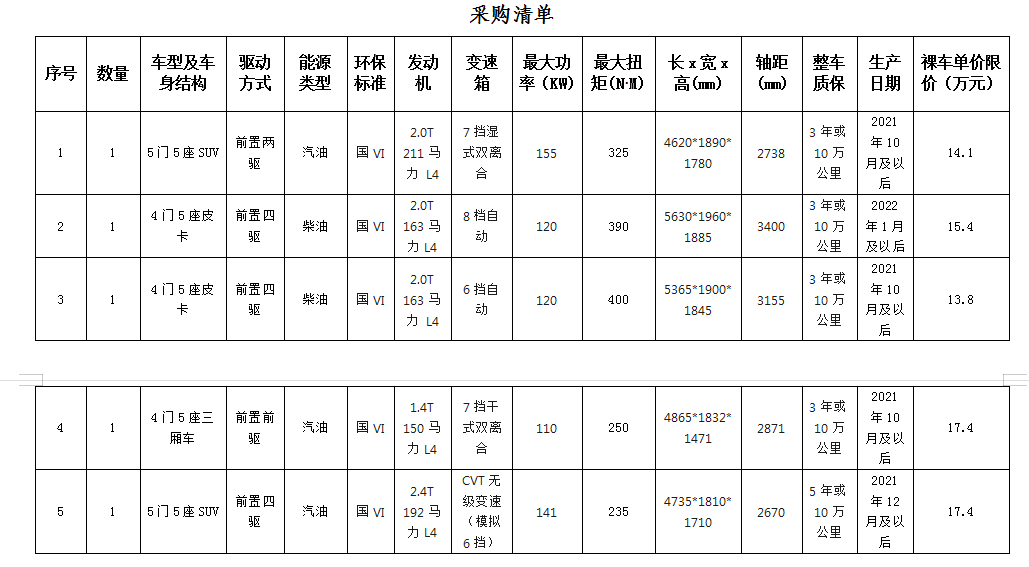滁州市興元商貿(mào)有限公司集中采購車輛更正公告